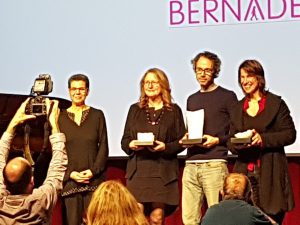 Un vídeo mostra en pantalla fragments de les obres nomenades. Entre elles, la de la finalista Chelo Àlvarez i la del guanyador en James Rhode. La Chelo explica: ” primer vaig començar denunciant la “trata de blanques” i més tard introdueixo el tema dels abusos sexuals, ja que me’n adono que aquests estan presents i vigents en la nostra societat i sovint des de molt aviat.”…….els joves no s’atreveixen denunciar al adult, sovint admirat……cal començar, cada un de nosaltres amb el nostre entorn i amb els que tenim al costat”. Passen uns fragments del vídeo de la Chelo, a on es veuen els detalls del seu treball i la experiència personal.